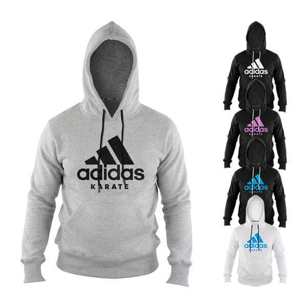 adidas karate majica s kapuljačom, vrhunske kvalitete • Proizvedena od kvalitetnog materijala (12 OZ / 350 g. 80/20 kombinacija poliestera i pamuka). • Karate oznaka označava pripadnost karate zajednici. • Veličine prilagođene svima, i djeci i odraslima.